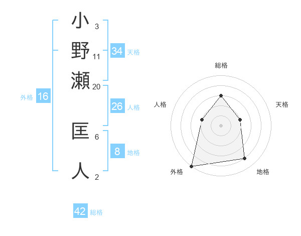 小野瀬 匡人さんを姓名の画数から五運を鑑定