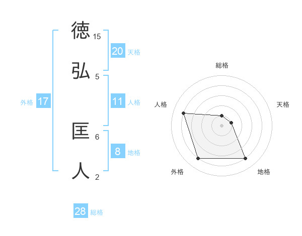 徳弘 匡人さんの天格は20画の1点!