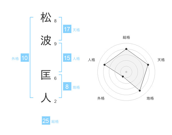 松波 匡人さんの総格は25画の4点!