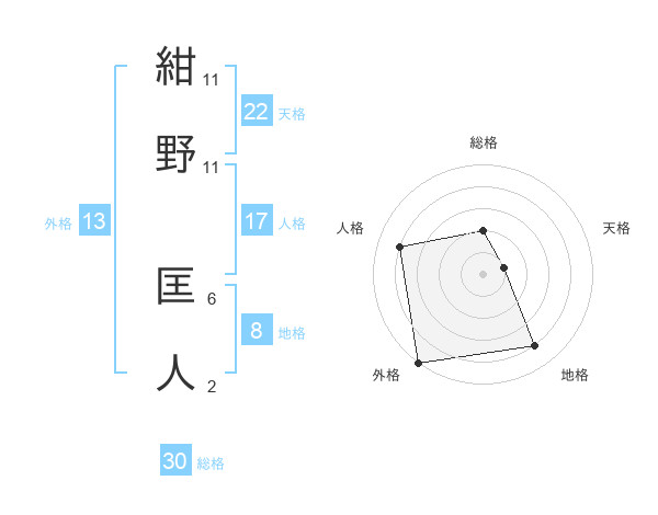紺野 匡人さんを姓名の画数から五運を鑑定