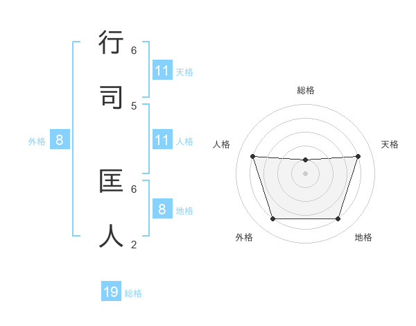 行司 匡人さんの地格は8画の4点!