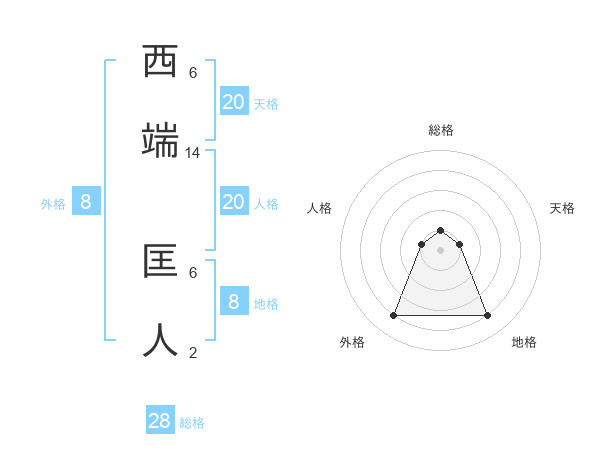 西端 匡人さんの総格は28画の1点!