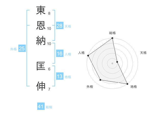 東恩納 匡伸さんの地格は13画の5点