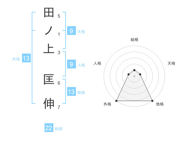 田ノ上 匡伸さんの外格は13画の5点!