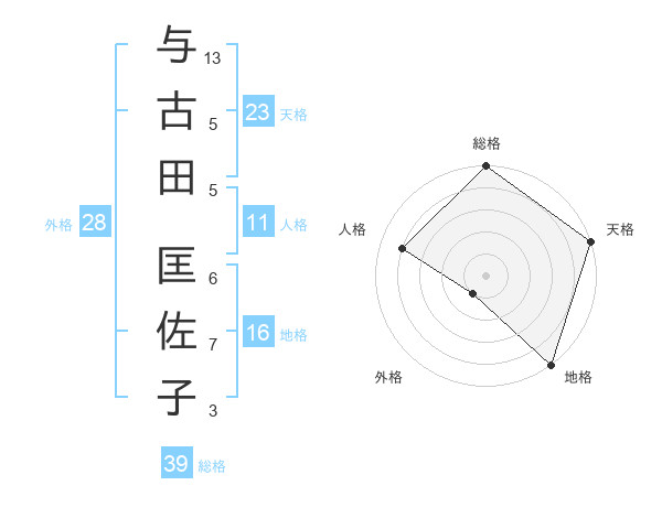 与古田 匡佐子さんの天格は23画の5点!