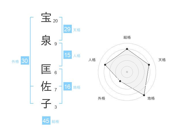 宝泉 匡佐子さんの総格は45画の4点!