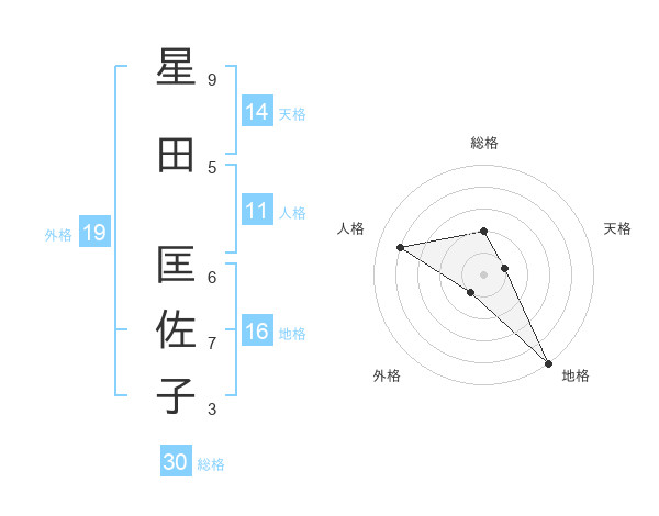 星田 匡佐子さんを姓名の画数から五運を鑑定