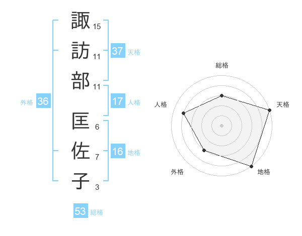諏訪部 匡佐子さんの総格は53画の3点!