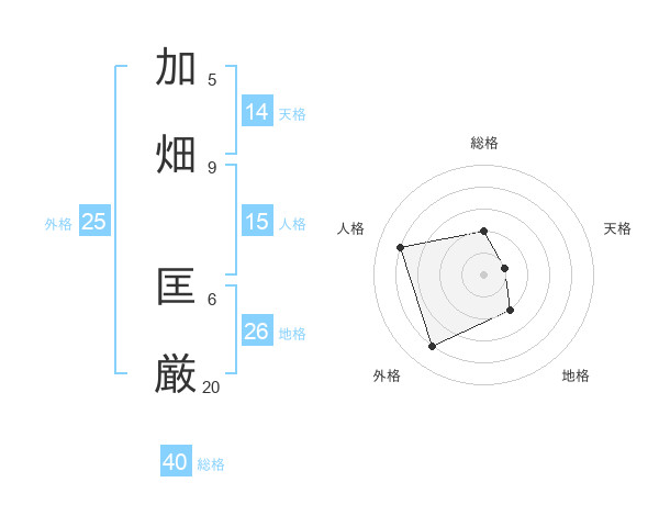 加畑 匡厳さんを姓名の画数から五運を鑑定