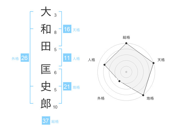 大和田 匡史郎さんを姓名の画数から五運を鑑定