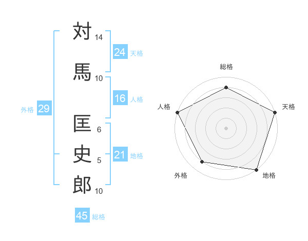 対馬 匡史郎さんの天格は24画の5点!