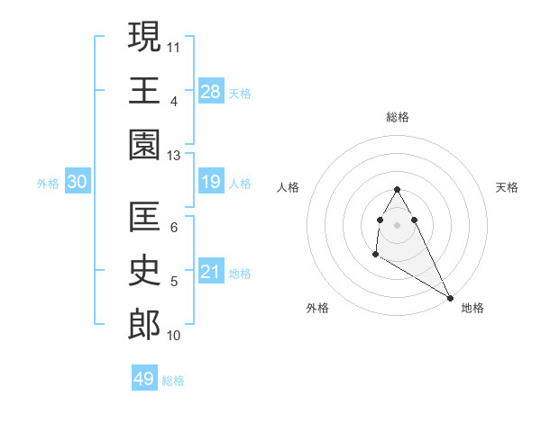 現王園 匡史郎さんの地格は21画の5点!