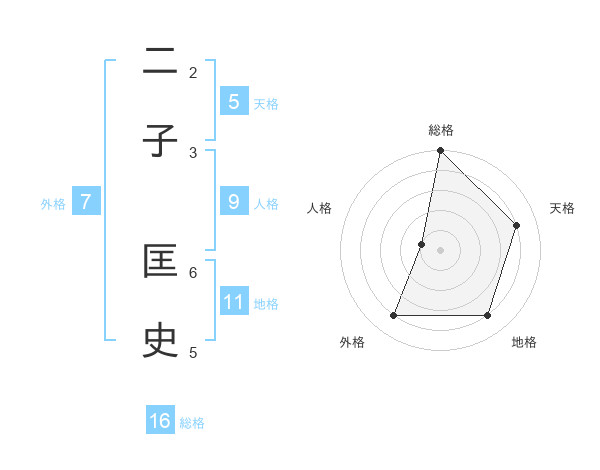 二子 匡史さんの総格は16画の5点!