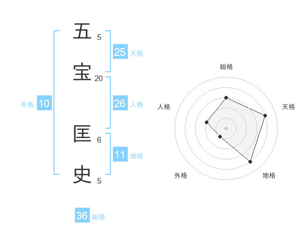 五宝 匡史さんを姓名の画数から五運を鑑定