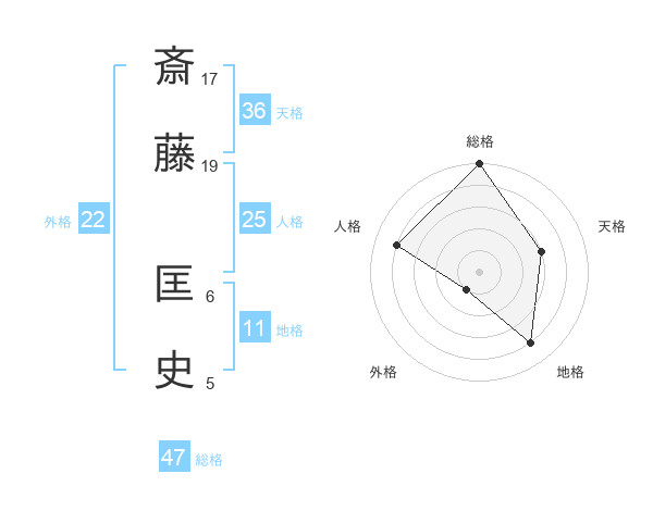 斎藤 匡史さんの総格は47画の5点!