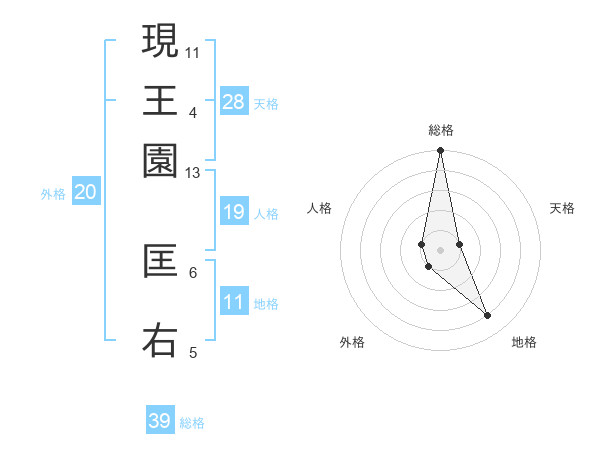 現王園 匡右さんを姓名の画数から五運を鑑定
