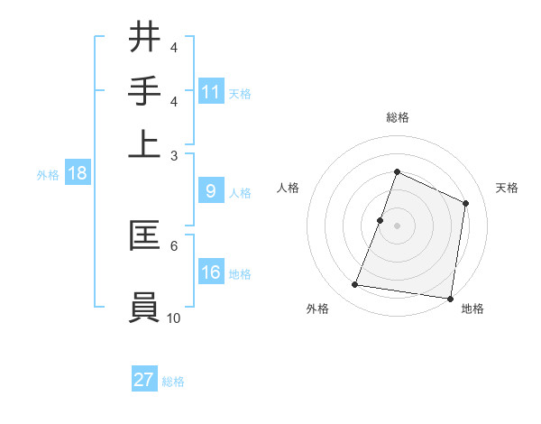 井手上 匡員さんを姓名の画数から五運を鑑定