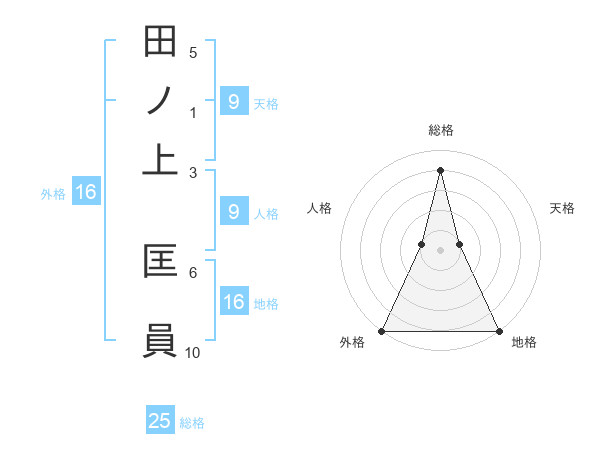 田ノ上 匡員さんを姓名の画数から五運を鑑定