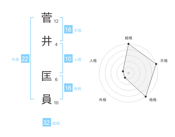 菅井 匡員さんの総格は32画の5点!