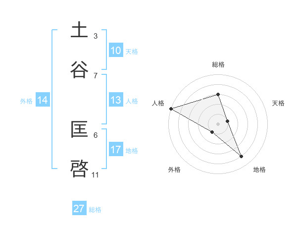 土谷 匡啓さんを姓名の画数から五運を鑑定