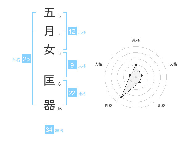 五月女 匡器さんの総格は34画の2点!