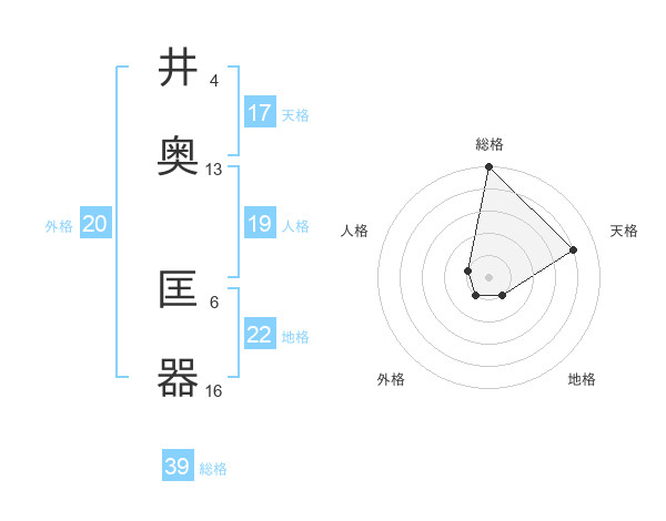 井奥 匡器さんの総格は39画の5点!