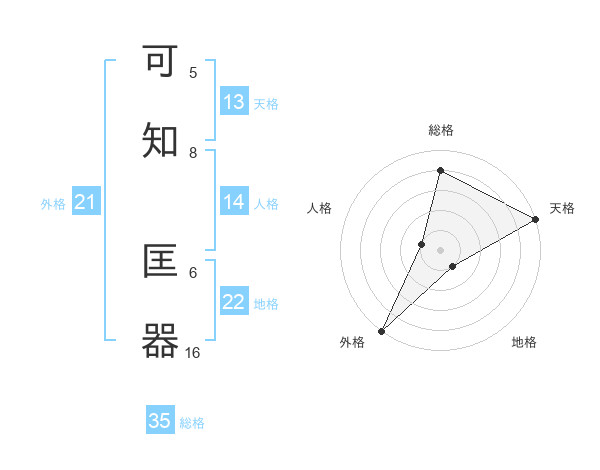 可知 匡器さんの天格は13画の5点!