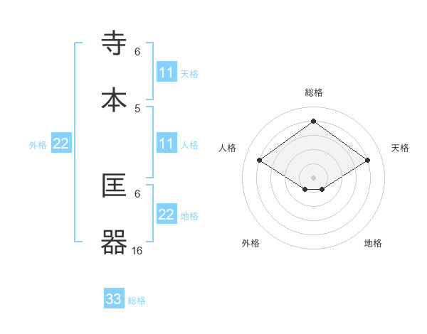 寺本 匡器さんの総格は33画の4点!