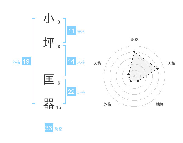 小坪 匡器さんを姓名の画数から五運を鑑定