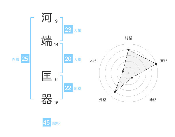 河端 匡器さんの総格は45画の4点!