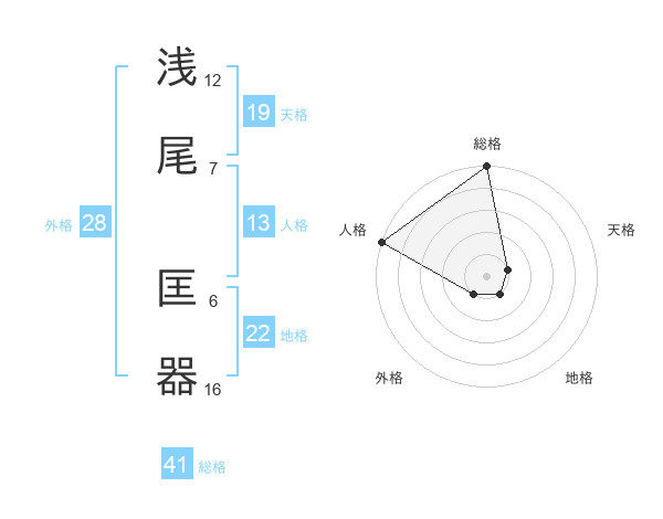 浅尾 匡器さんの総格は41画の5点!
