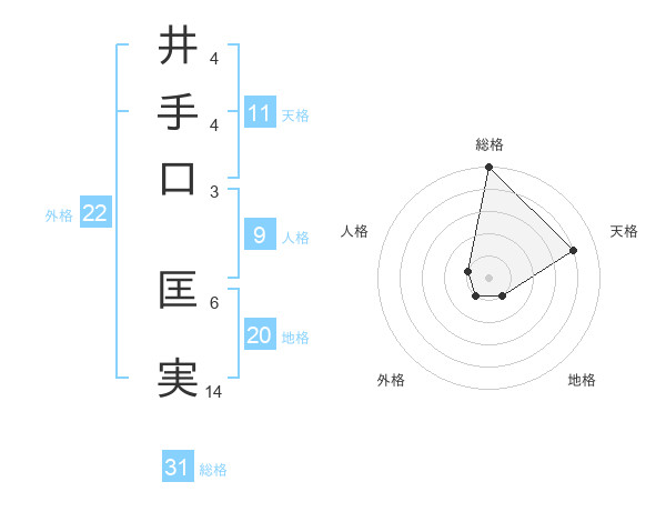 井手口 匡実さんを姓名の画数から五運を鑑定
