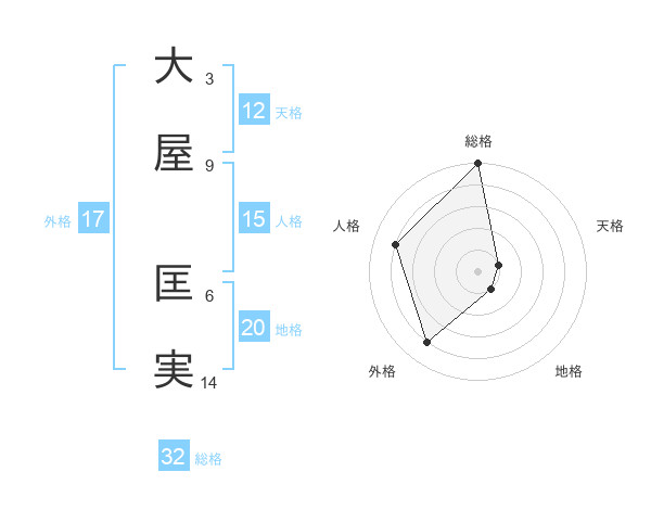 大屋 匡実さんを姓名の画数から五運を鑑定