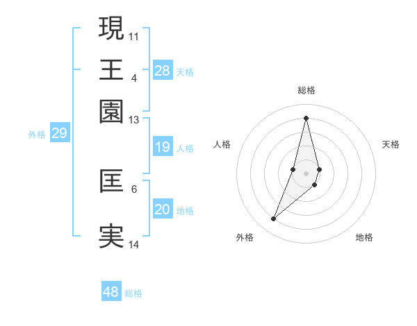 現王園 匡実さんの総格は48画の4点!