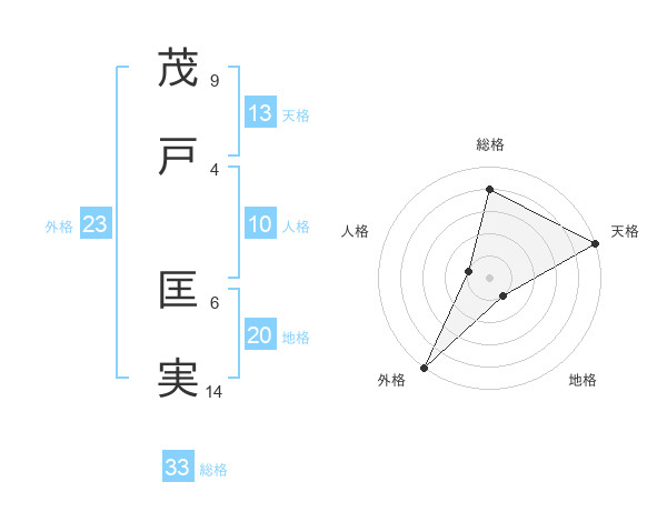 茂戸 匡実さんを姓名の画数から五運を鑑定