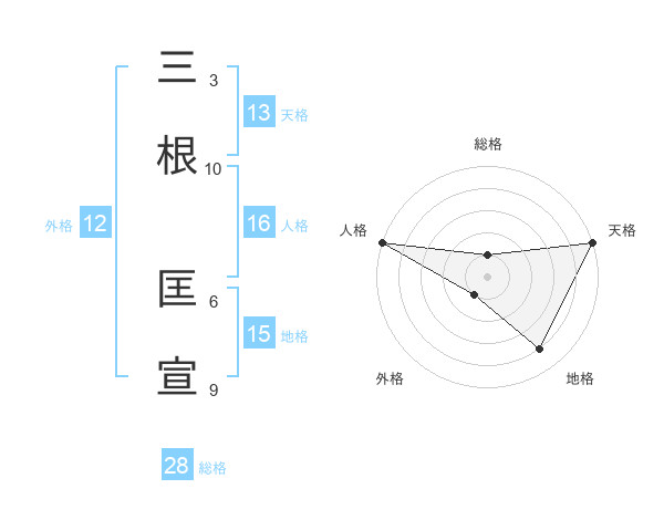 三根 匡宣さんを姓名の画数から五運を鑑定