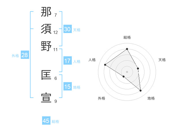 那須野 匡宣さんを姓名の画数から五運を鑑定