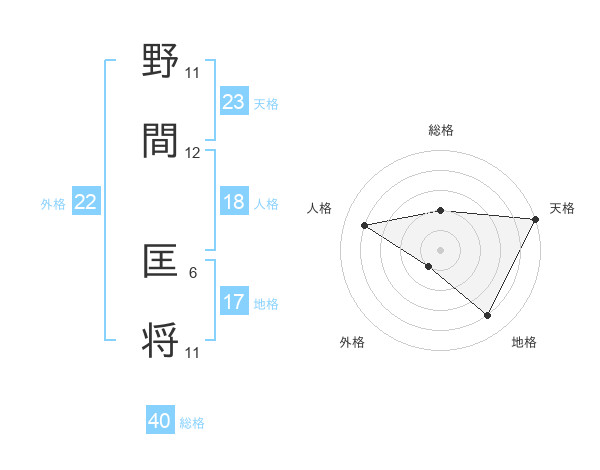野間 匡将さんの天格は23画の5点!