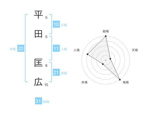 平田 匡広さんの総格は31画の5点!