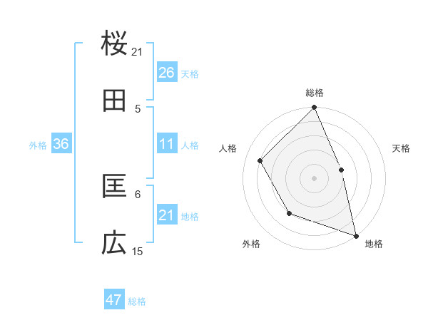 桜田 匡広さんを姓名の画数から五運を鑑定