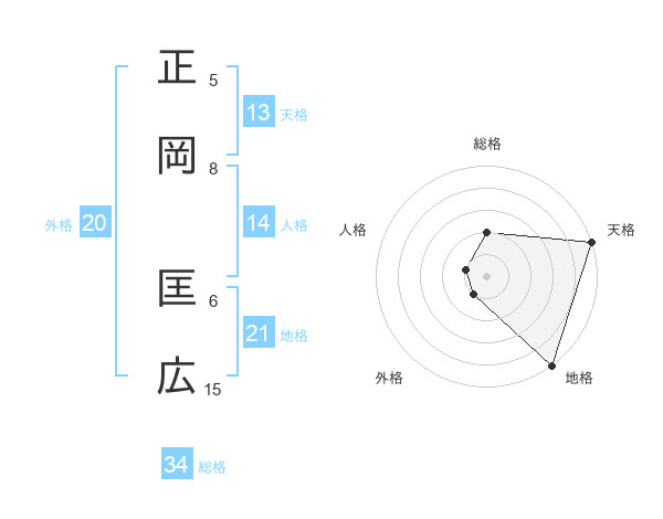 正岡 匡広さんを姓名の画数から五運を鑑定