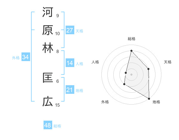 河原林 匡広さんの地格は21画の5点!
