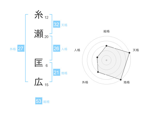 糸瀬 匡広さんを姓名の画数から五運を鑑定