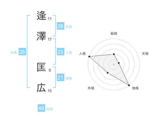 逢澤 匡広さんの天格は28画の1点!