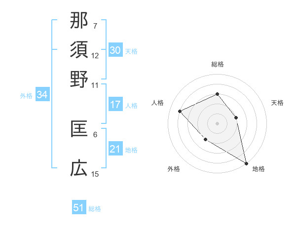 那須野 匡広さんを姓名の画数から五運を鑑定