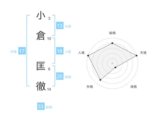 小倉 匡徹さんを姓名の画数から五運を鑑定