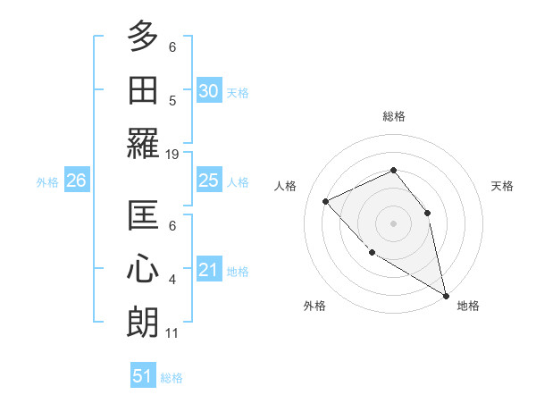多田羅 匡心朗さんを姓名の画数から五運を鑑定