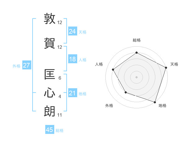 敦賀 匡心朗さんの総格は45画の4点!