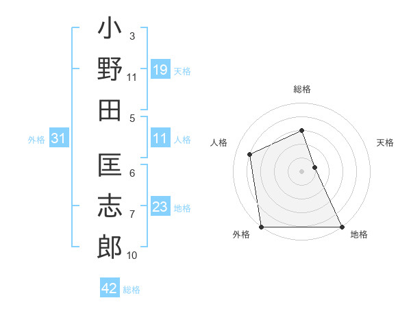 小野田 匡志郎さんを姓名の画数から五運を鑑定