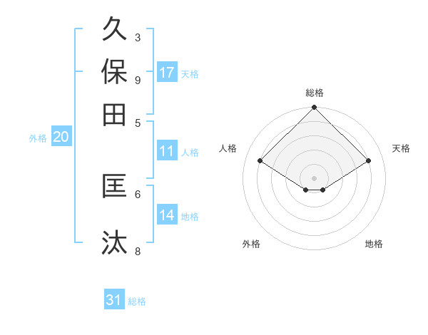 久保田 匡汰さんを姓名の画数から五運を鑑定